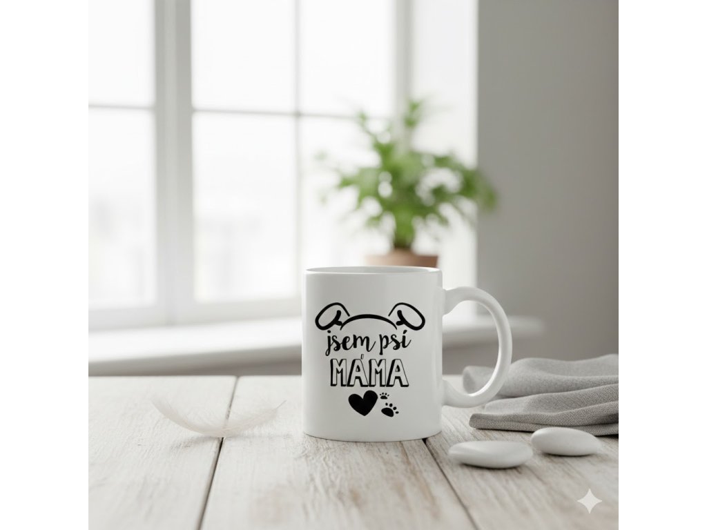 Originální dárek pro milovnici a chovatelku psů. Hrnek s nápisem „jsem psí máma“ je milý dárek pro ženu, která má ráda pejsky a stará se oně, k narozeninám, k svátku nebo pro radost.