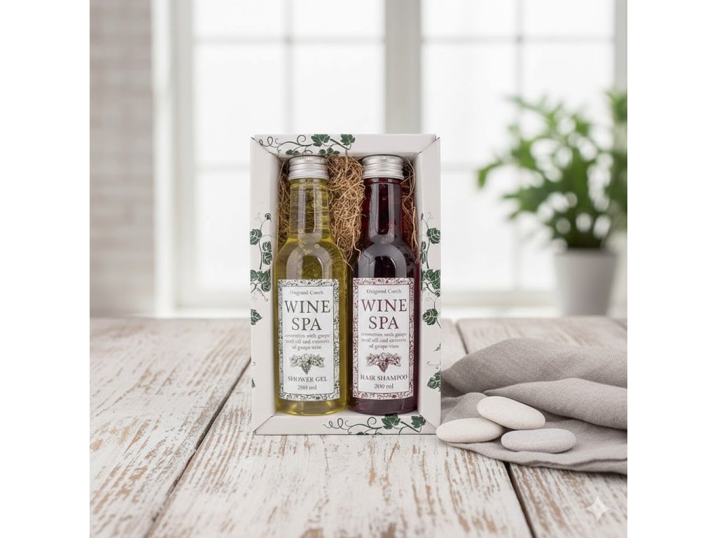 Dárkový kosmetický balíček vinné kosmetiky Wine Spa – vlasový šampon 200 ml a sprchový gel 200 ml