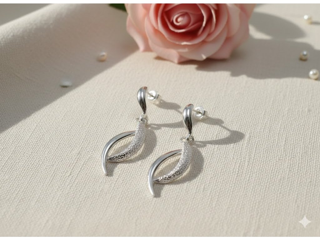 Dodejte svému vzhledu nádech moderní elegance s těmito visacími náušnicemi. Šperk vyniká originálním designem, který kombinuje vysoký zrcadlový lesk s jemně matným (pískovaným) povrchem. Díky povrchové úpravě rhodiem si náušnice dlouhodobě zachovávají svůj jas, nečernají a jsou velmi šetrné k pokožce.