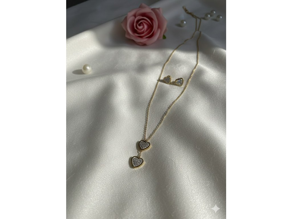 Souprava z chirurgické oceli: Náhrdelník a náušnice se zirkony ve tvaru srdce