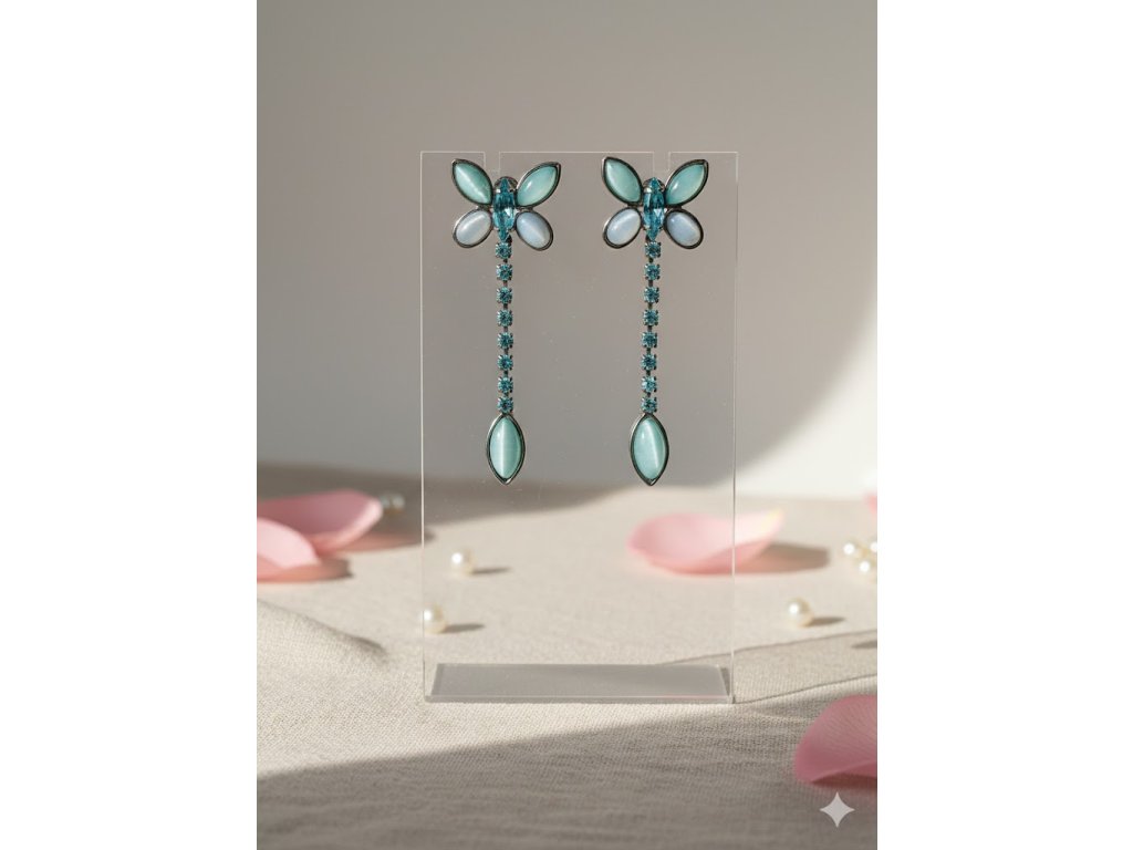 Ozdobte se šperkem, který v sobě spojuje křehkost přírody a tradici jabloneckého řemesla. Tyto detailně propracované visací náušnice ve tvaru motýlků jsou osázeny kvalitními českými skleněnými kameny v harmonických odstínech modré a zelené. Tmavá povrchová úprava ruthenium dodává šperku moderní, luxusní vzhled a zajišťuje vysoký kontrast, díky kterému kameny doslova září.